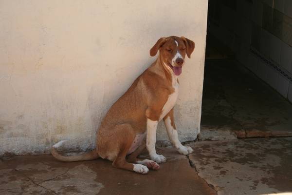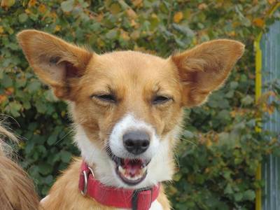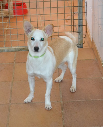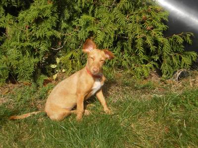 Unsere BANANA ist ein Sonnenschein, geboren 03/2014 und 42 cm hoch. Wenn man BANANA kennenlernt, geht einem das Herz auf. Ihrem Charme kann kaum jemand widerstehen. Sie dürfte ein Podengo-Mix sein, und dieses liebenswerte Wesen ist typisch für diese Rasse, es sind so wundervolle Hunde, in die man sich einfach verlieben muss. BANANA wohnt auf einer Pflegestelle mit zahlreichen anderen Hunden zusammen. Sie hat auch schon Katzen und Kinder kennen gelernt und ist mit allem gut Freund.