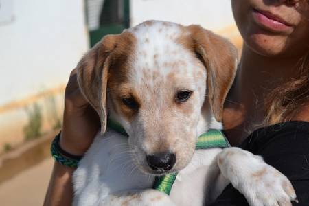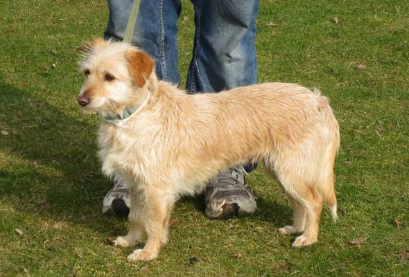 Sie ist ein Mischling, wurde am 26.07.2015 geboren, wiegt 10 Kilo und ist 45cm groß.Sie ist eine superliebe Hündin, die sich mit allem und jedem verträgt.Sie ist absolut kinderlieb, verträgt sich gut mit anderen Hunden und auch mit Katzen.Altersgemäß ist sie verspielt - da hat sie eine Riesenfreude dran!Und eine Schmusemaus ist sie - Kuschelfaktor garantiert! Ruft an und lernt sie persönlich kennen - es lohnt sich unbedingt.