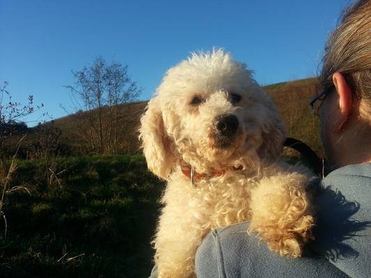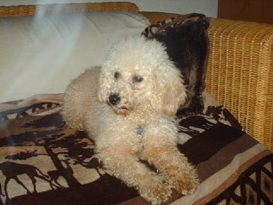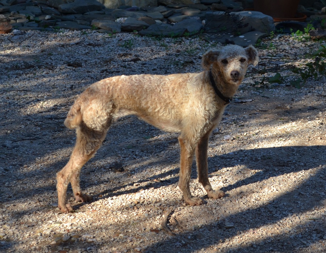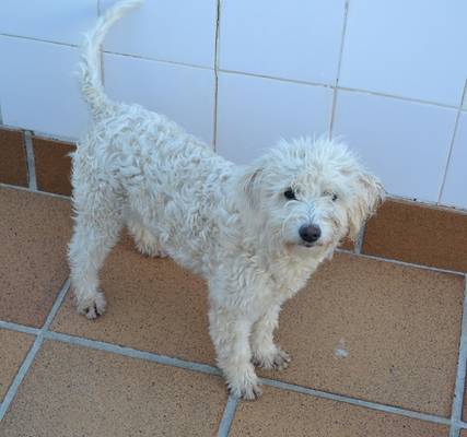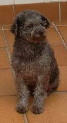 Poldi ist eine bezaubernde Pudel-Mix-Dame mit ca. 41cm und 11,5kg. Geboren ist sie etwa 03/2011. Sie wurde in sehr vernachlässigtem Zustand aufgegriffen, dass Fell lang und verfilzt. Nun wurde sie gebadet und geschoren und man sieht, welch Schönheit dabei heraus kam! Ihre schwarzen Locken bringen ihre schönen gold-braunen Augen so richtig zur Geltung. Und so lieb, wie sie mit diesen Augen schauen kann, ist sie auch. Sie ist nur nett und absolut unkompliziert, verträgt sich mit allem und jedem, geht freundlich auf jeden Menschen zu und freut sich über jede noch so kurze Streicheleinheit. Dazu ist sie auch stubenrein, kann (derzeit mit anderen Hunden) alleine bleiben, fährt gut im Auto mit, geht super an der Leine und ist katzenverträglich. Sicherlich ist diese verschmuste und verspielte Hündin auch gut für Hundeanfänger geeignet. Natürlich ist Poldi auch geimpft, gechipt, entwurmt und kastriert.