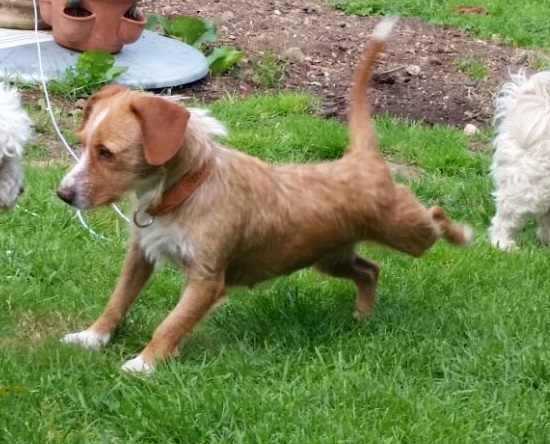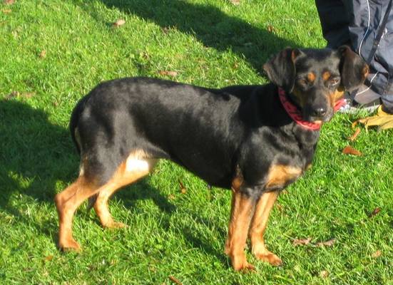 Das ist unsere kleine, tolle Bracke-Mix Hündin Toffy. Sie hat eine recht kurze Rute (ca.12cm) aber das Ding kann wedeln das glauben Sie nicht. Sie ist sooo lieb und toll das man sie einfach nur gern haben muss. Sie ist absolut verschmust und sehr liebenswert. Sie versteht sich bestens mit anderen Hunden und kann mit anderen Hunden auch schon alleine bleiben. Geboren ist unser kleine Zuckerschnute am 15.06.2011 und hat eine Schulterhöhe von ca.35,0 cm. Sie ist kastriert, geimpft, gechipt und entwurmt.