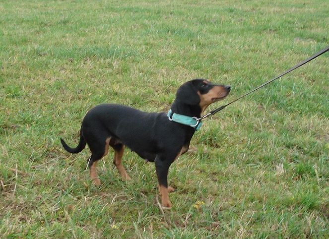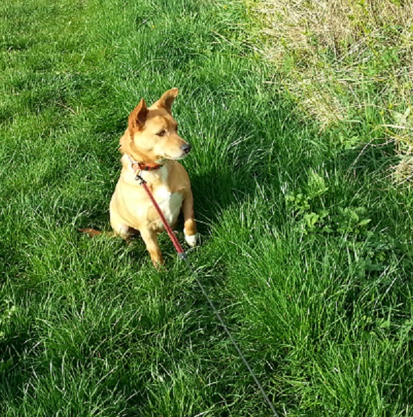 Sie geht vorbildlich an der Leine, gerne mit flottem Schritt und wedelt stets fröhlich dabei.