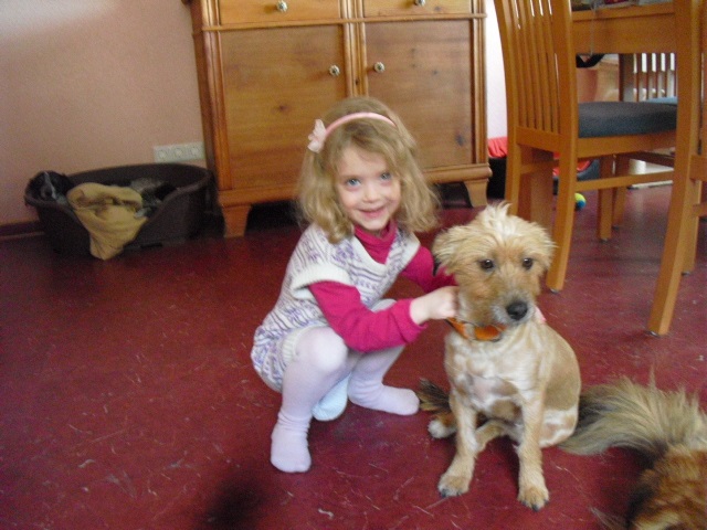 Momentan bespaße ich meine Pflegefamilie, die besteht aus 2 Erwachsenen und zwei größeren Kindern, sowie meiner großen Freundin einer Labradorhündin, von der ich schon ganz viel gelernt habe. Wir vertragen uns prima und wir sind ein echt starkes Team. Wir machen Wettessen, raufen, toben, kuscheln und und und……………