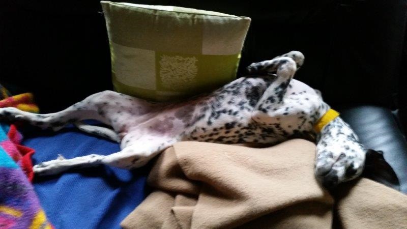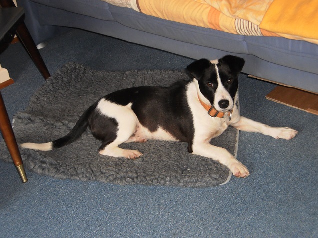 Selbst für kürzere Zeit ohne andere Hunde alleine bleiben kann Tamira schon. Sie jammert nicht dabei und macht auch nichts kaputt.